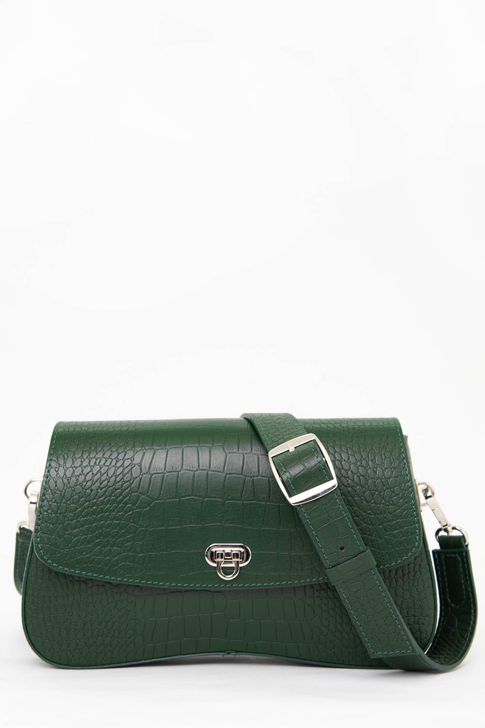Сумка женская со съемным регулируемым ремнем через плечо. Сумка закрывается клапаном на замок и имеет одно отделение. На задней стенке открытый карман для банковских карт. Сумка на подкладке. Внутри сумки карман на молнии и накладной карман на молнии "карман в кармане". 29х17/5х5/5см