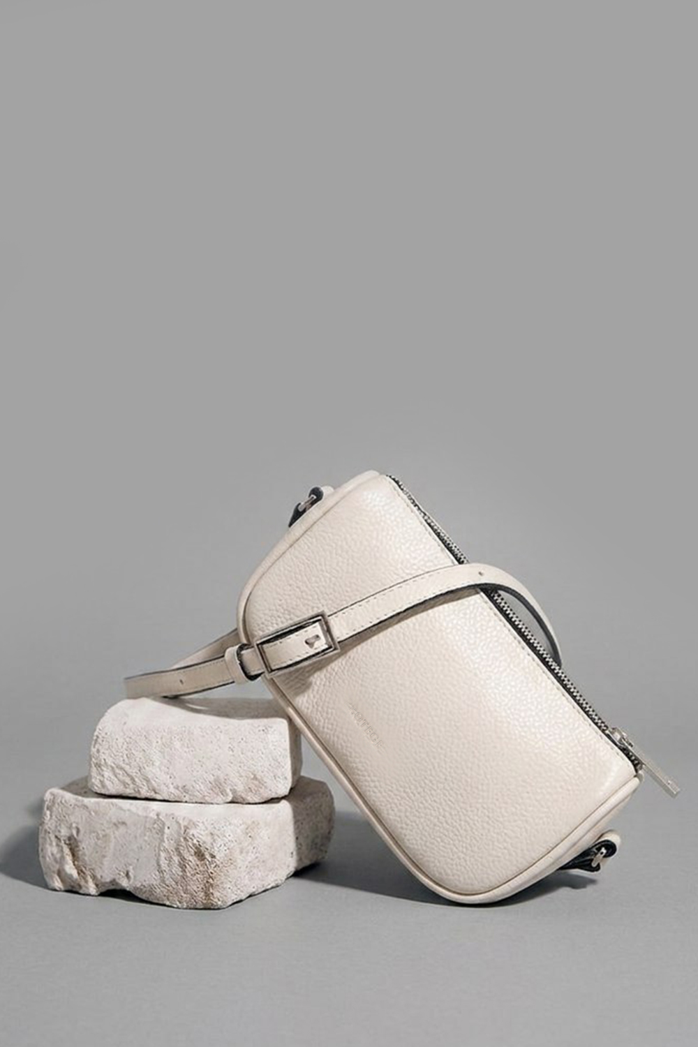 Сумка женская с несъемным регулируемым ремнем через плечо. Сумка закрывается на молнию и имеет одно отделение. Сумка на подкладке. Внутри сумки карман на молнии и накладной карман. 23х13х10см