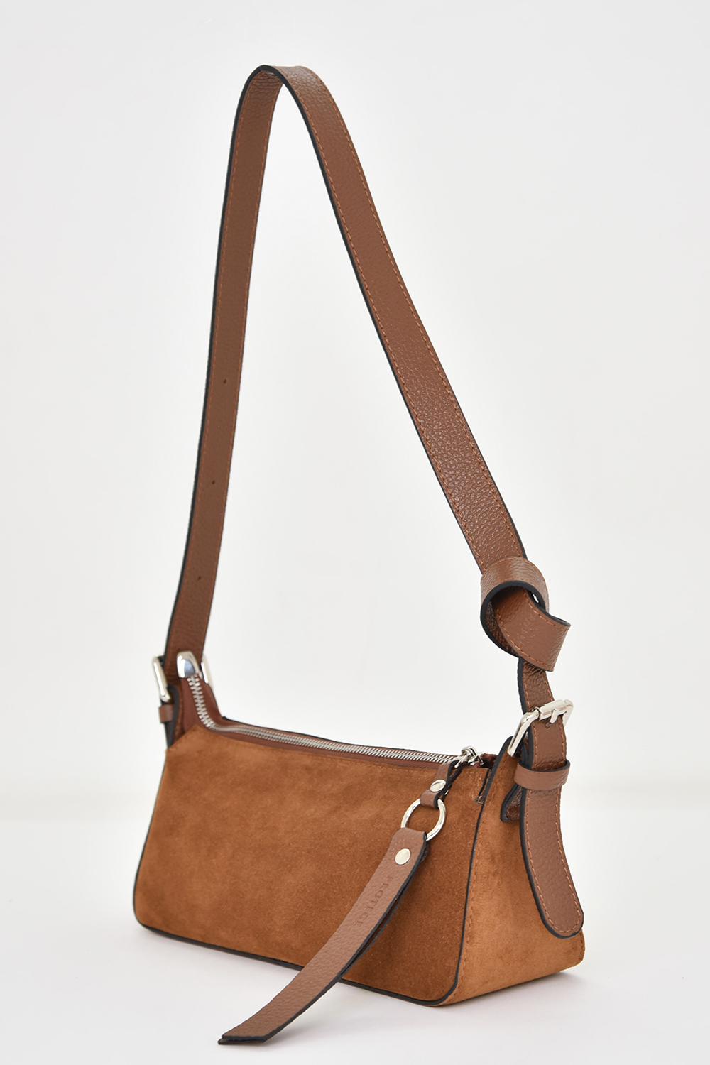 Сумка женская со съемным регулируемым ремнем через плечо. Сумка закрывается на молнию и имеет одно отделение. Сумка на подкладке. Внутри сумки карман на молнии. 27х11х10см