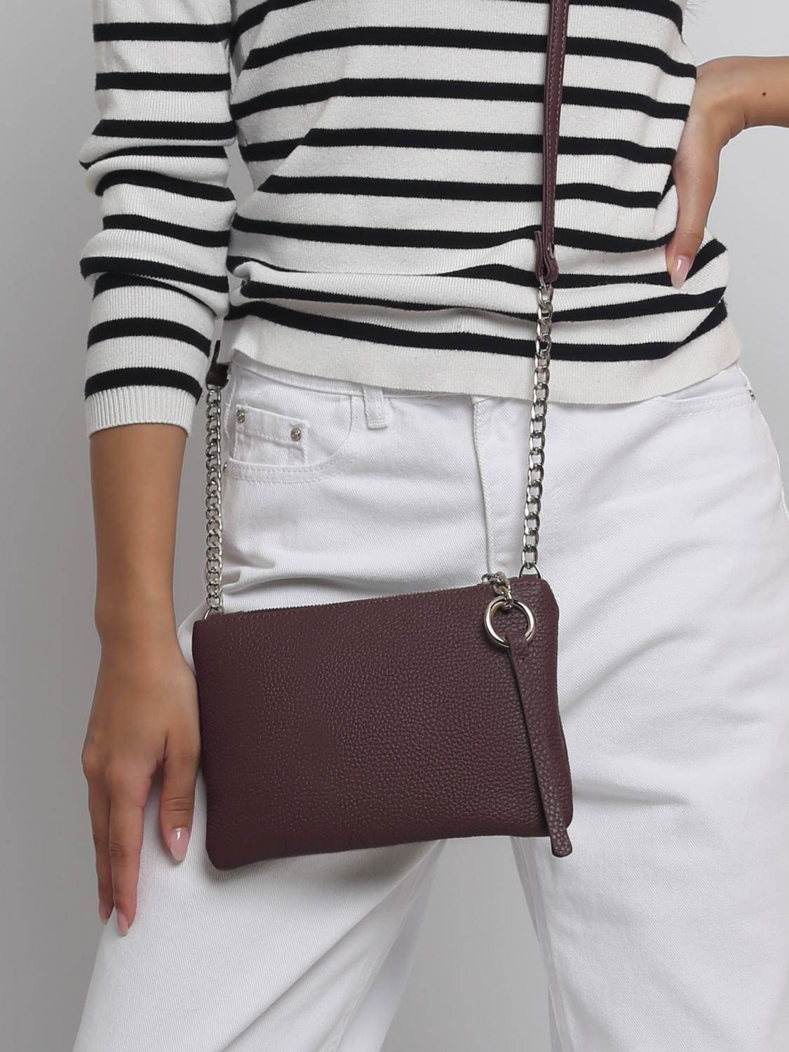 Миниатюрная сумочка закрывается на молнию, носится на плече и через плечо. В неё с лёгкостью поместятся смартфон, компактный кошелек, очки.