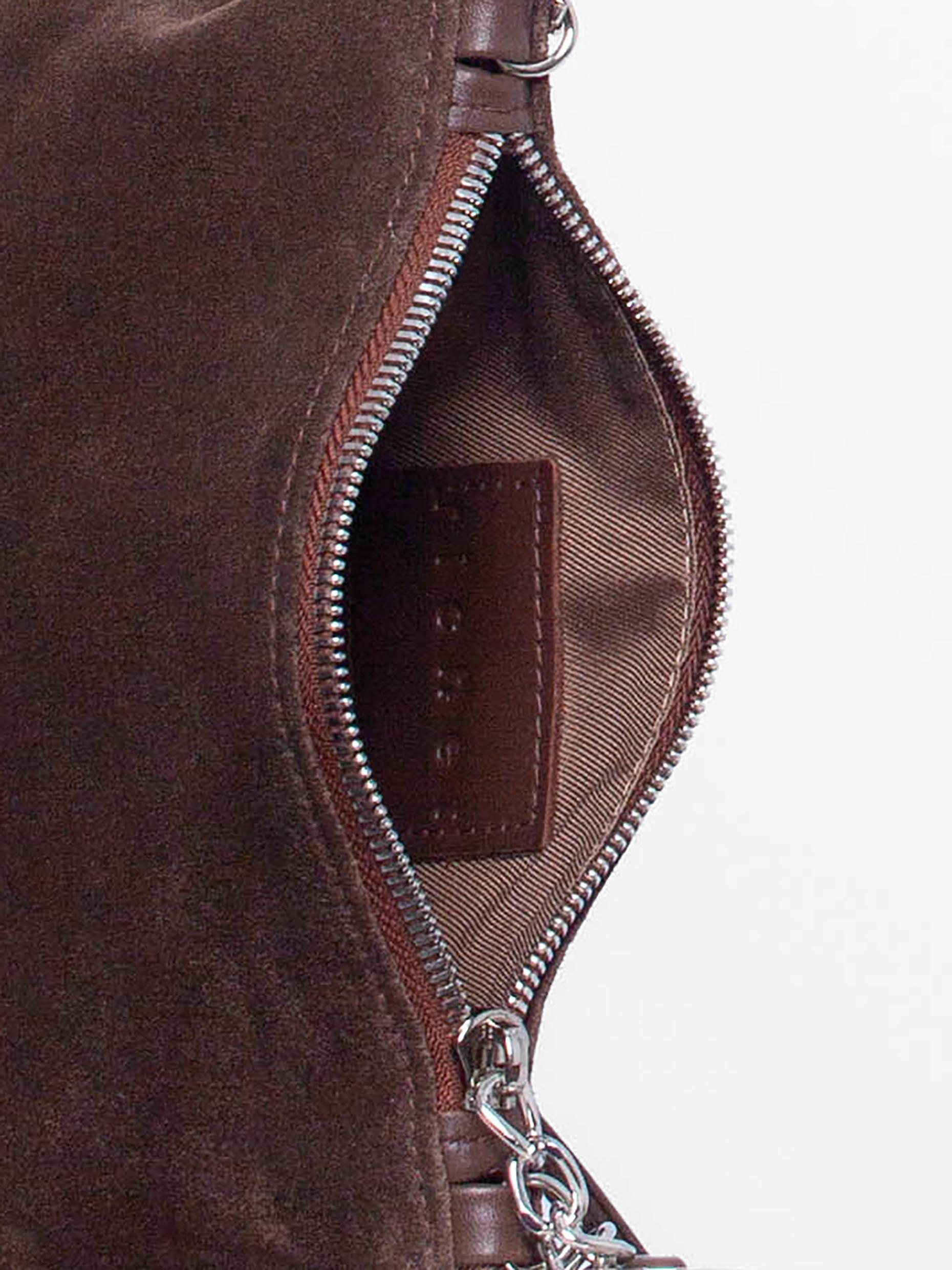 Миниатюрная сумочка закрывается на молнию, носится на плече и через плечо. В неё с лёгкостью поместятся смартфон, компактный кошелек, очки.