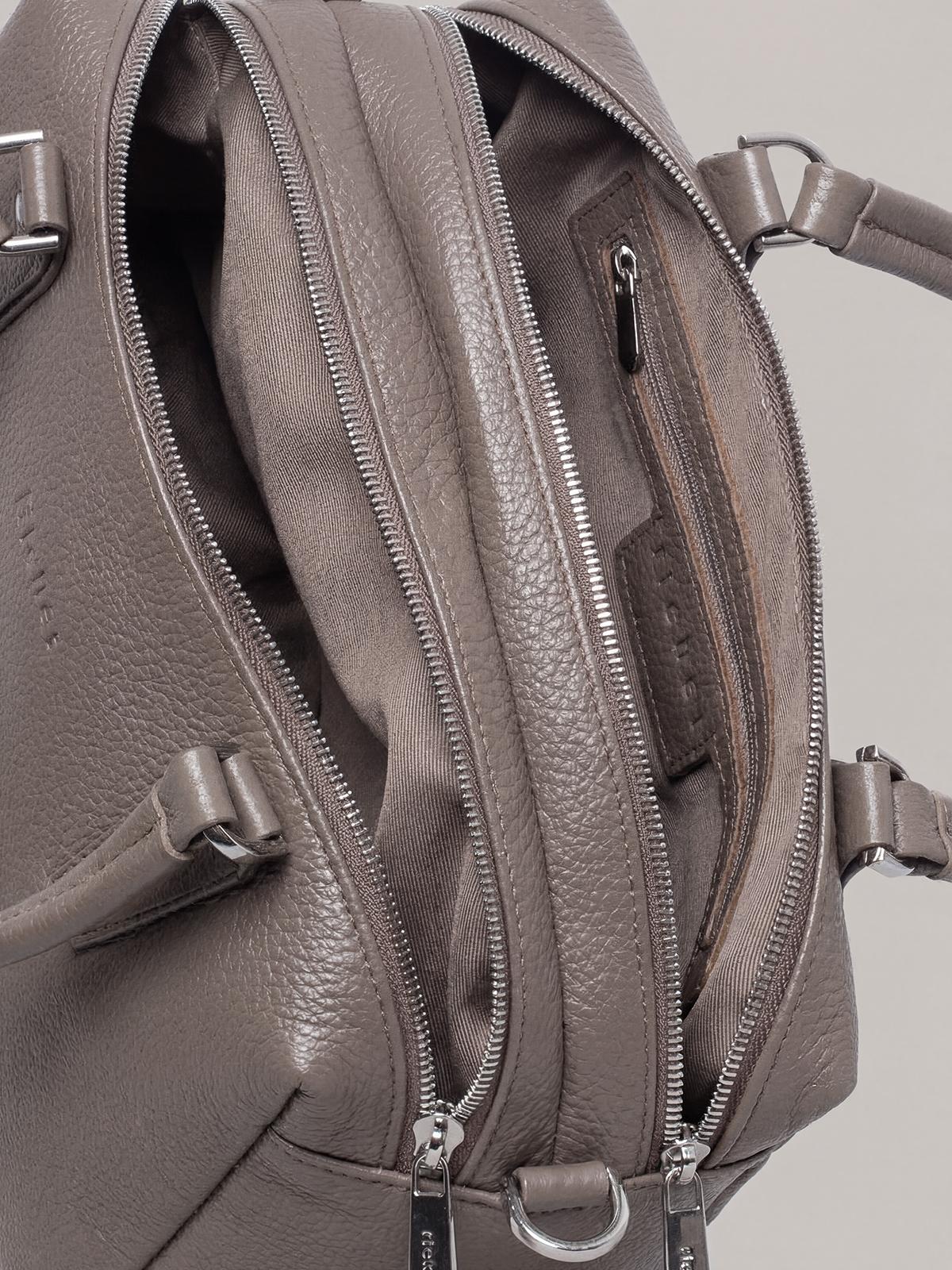отделами,каждый из которых закрывается на молнию, носится в руке или на плече