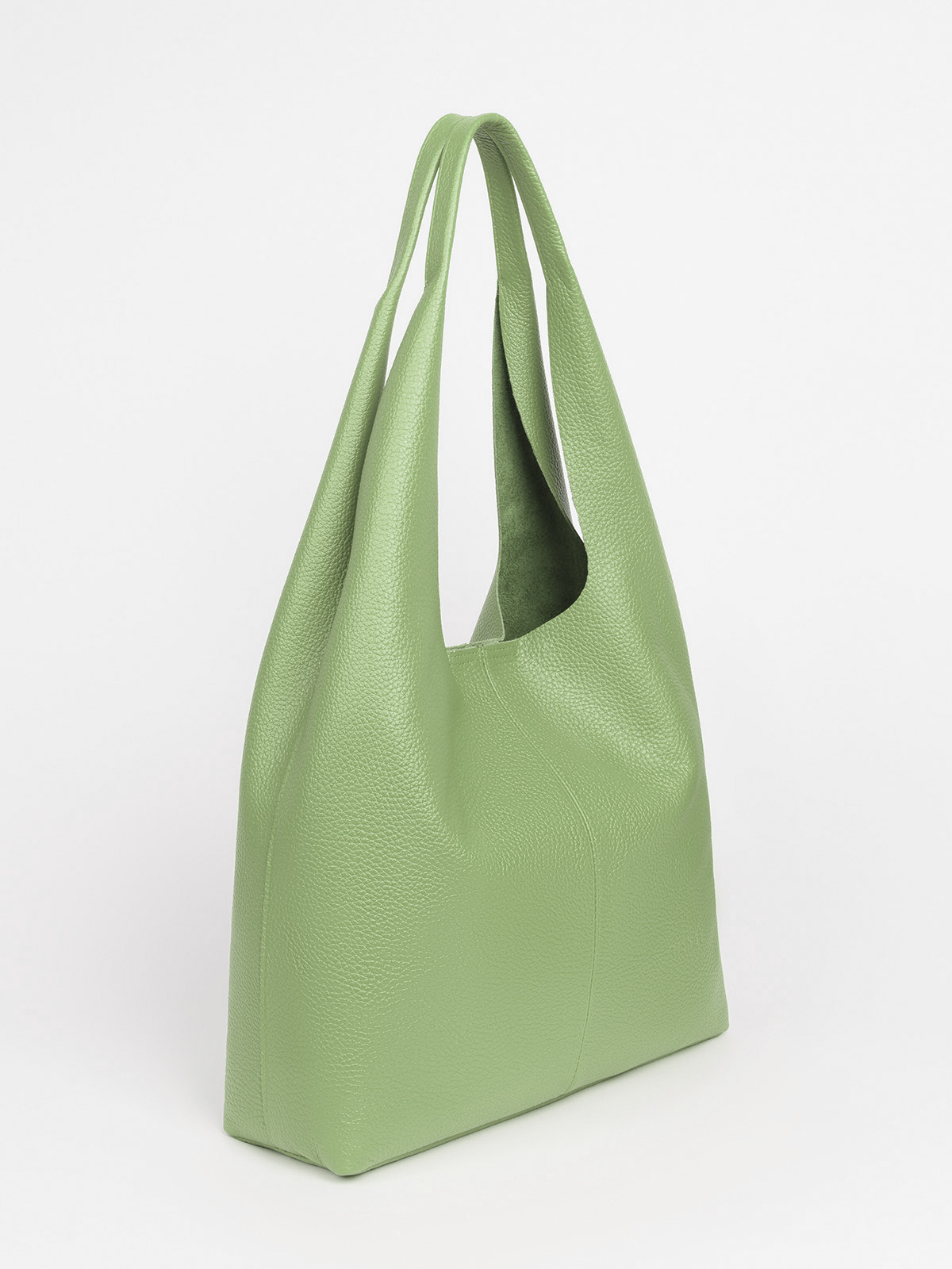 Стильная кожаная сумка-мешок.