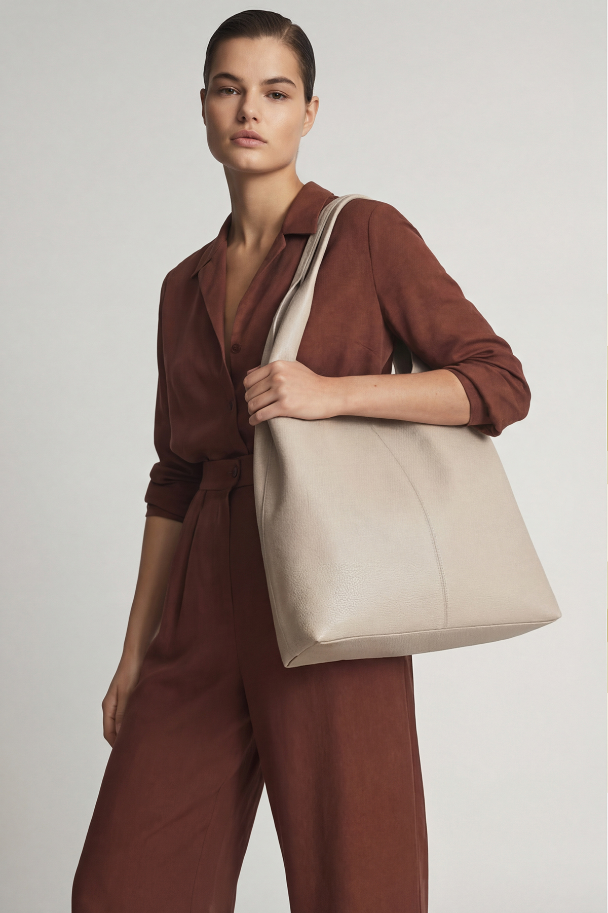 Стильная кожаная сумка-мешок.