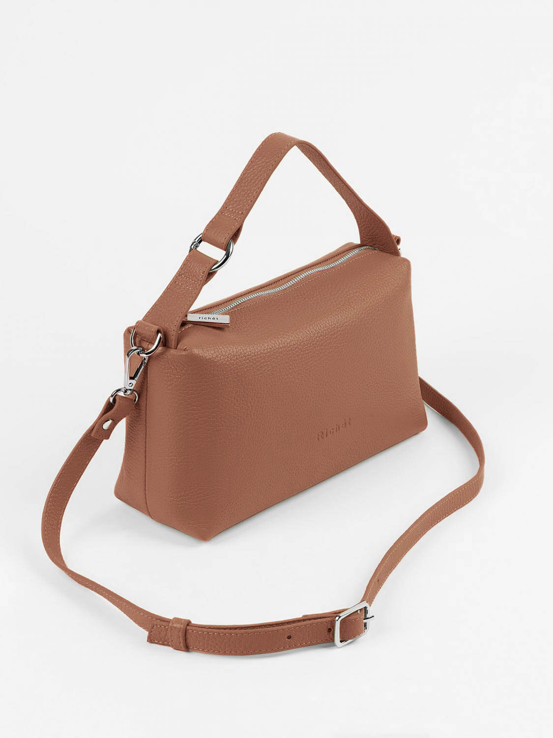 Великолепная функциональная сумка кросс-боди из натуральной кожи от Richet (РИШЕ) закрывается на молнию.