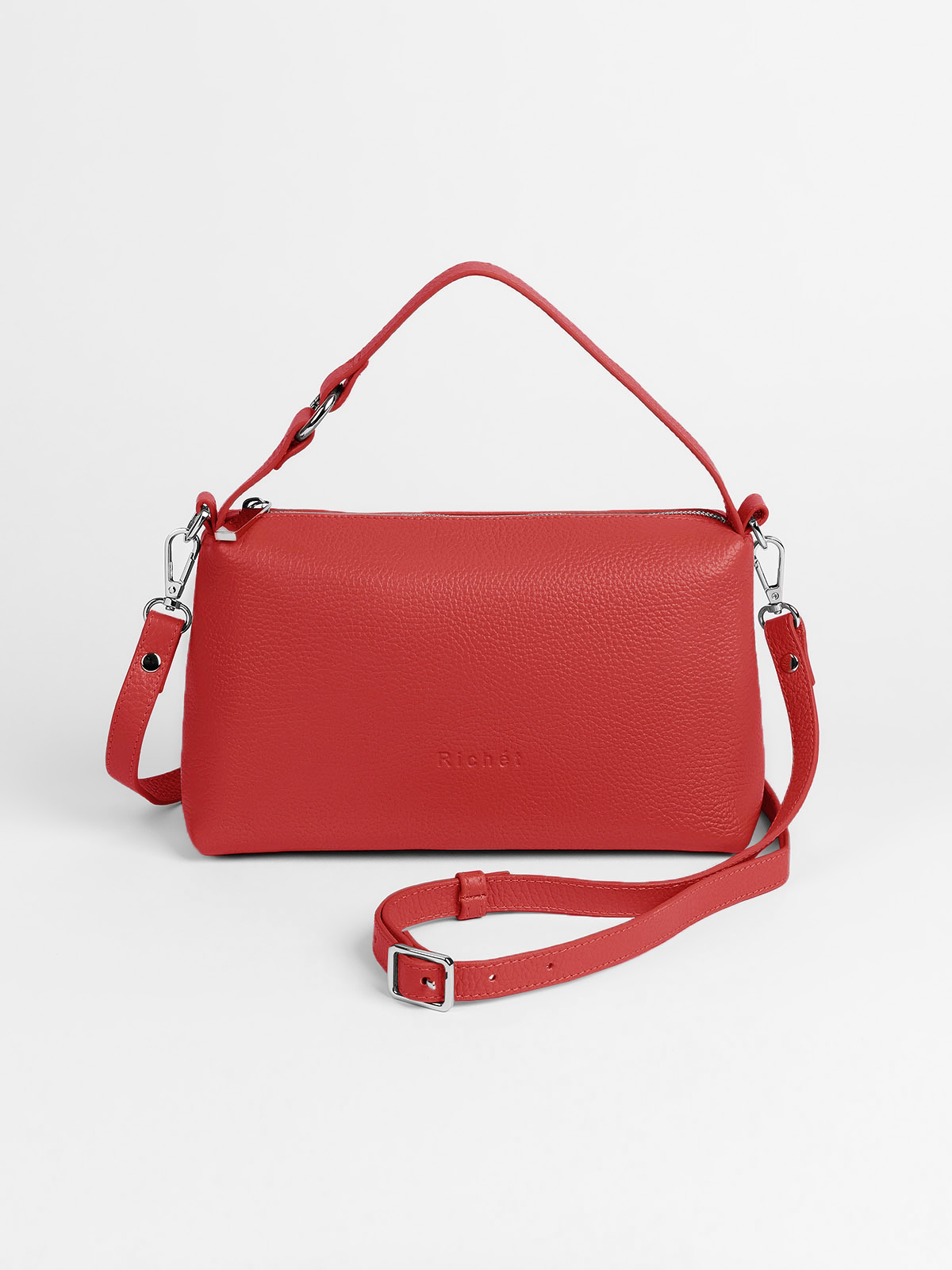 Великолепная функциональная сумка кросс-боди из натуральной кожи от Richet (РИШЕ) закрывается на молнию.