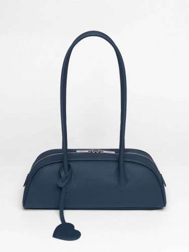 Великолепная функциональная сумка-багет из натуральной кожи от Richet (РИШЕ) закрывается на молнию в стилистике bowling bag.