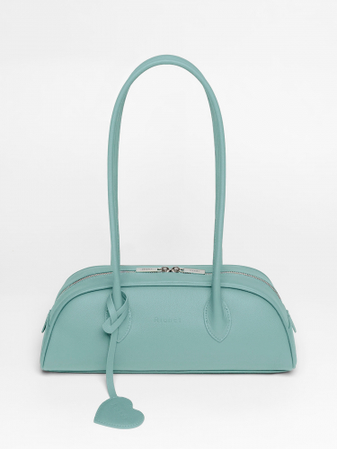 Великолепная функциональная сумка-багет из натуральной кожи от Richet (РИШЕ) закрывается на молнию в стилистике bowling bag.