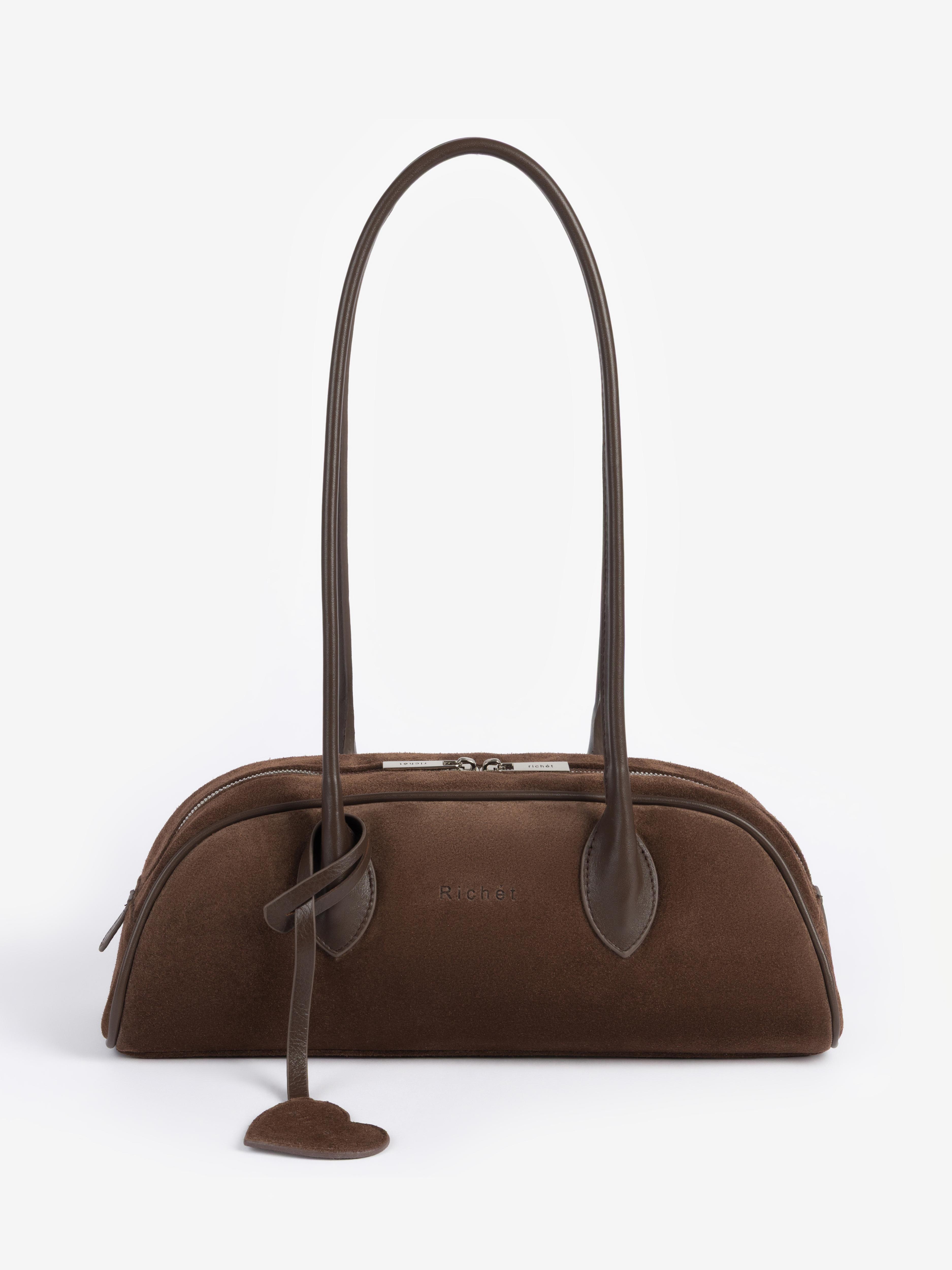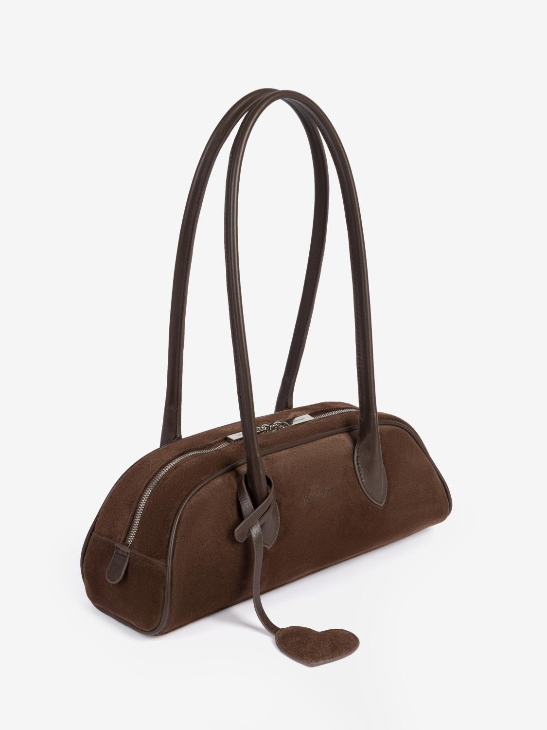Великолепная функциональная сумка-багет из натуральной кожи от Richet (РИШЕ) закрывается на молнию в стилистике bowling bag.