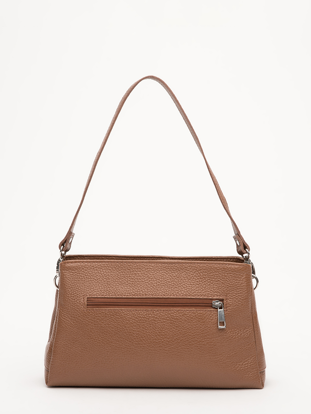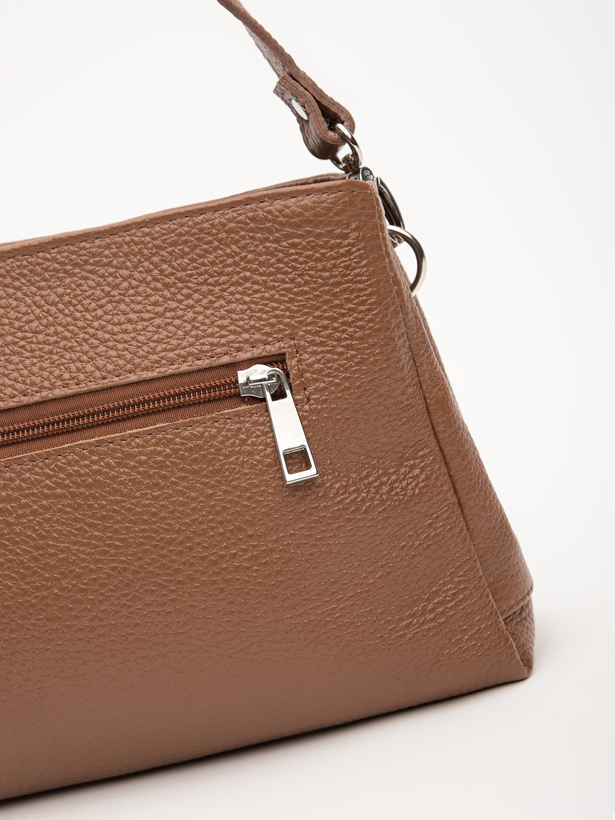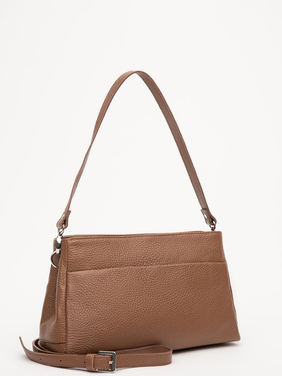 Элегантная сумка кросс-боди среднего размера из натуральной кожи с удобным длинным регулируемым ремнём и дополнительной ручкой на карабинах. Трапециевидная форма, расширяющаяся к низу, обеспечивает удобную организацию пространства с двумя основными отделениями на молнии и двумя внутренними карманами. На передней части — стильное тиснение и функциональный карман на кнопке, а на задней — дополнительный карман на молнии для мелочей. Практичная и стильная, эта сумка идеально подходит для повседневного использования, сочетая в себе удобство и элегантный дизайн. Универсальный аксессуар, который дополнит любой образ.