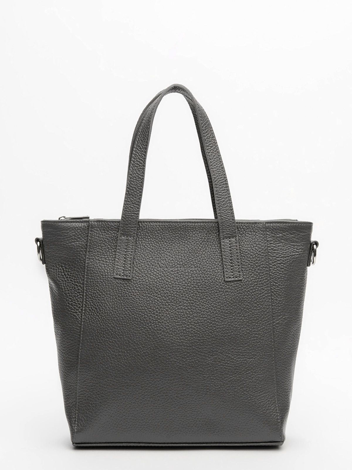 Элегантный кожаный тоут среднего размера с трапециевидным силуэтом, сужающимся книзу. Длинные настрочные ручки и съемный регулируемый ремень на карабинах предлагают несколько вариантов ношения. Внутри - три стандартных кармана для удобного хранения мелочей. Задний карман на молнии обеспечивает быстрый доступ к необходимым вещам. Стильное тиснение на передней части завершает лаконичный классический дизайн сумки.