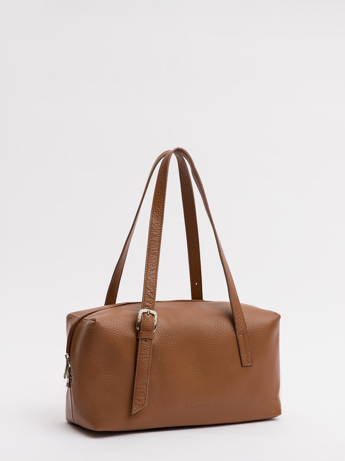 Стильный саквояж в модной форме "Еast-west" из натуральной кожи с вытянутым горизонтальным силуэтом. Регулируемые длинные ручки с пряжками позволяют носить сумку на плече или в руке. Внутри - два стандартных кармана для удобного хранения мелочей. Задний карман на молнии и тиснение на передней части добавляют практичности и элегантности. Идеальный аксессуар для тех, кто ценит трендовый дизайн и качественные материалы.