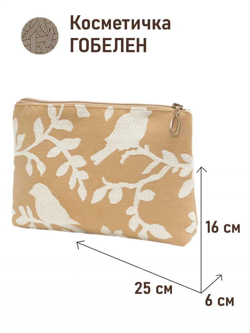 1045 Косметичка Птицы бежевый фон 25х16х6 см 2520271