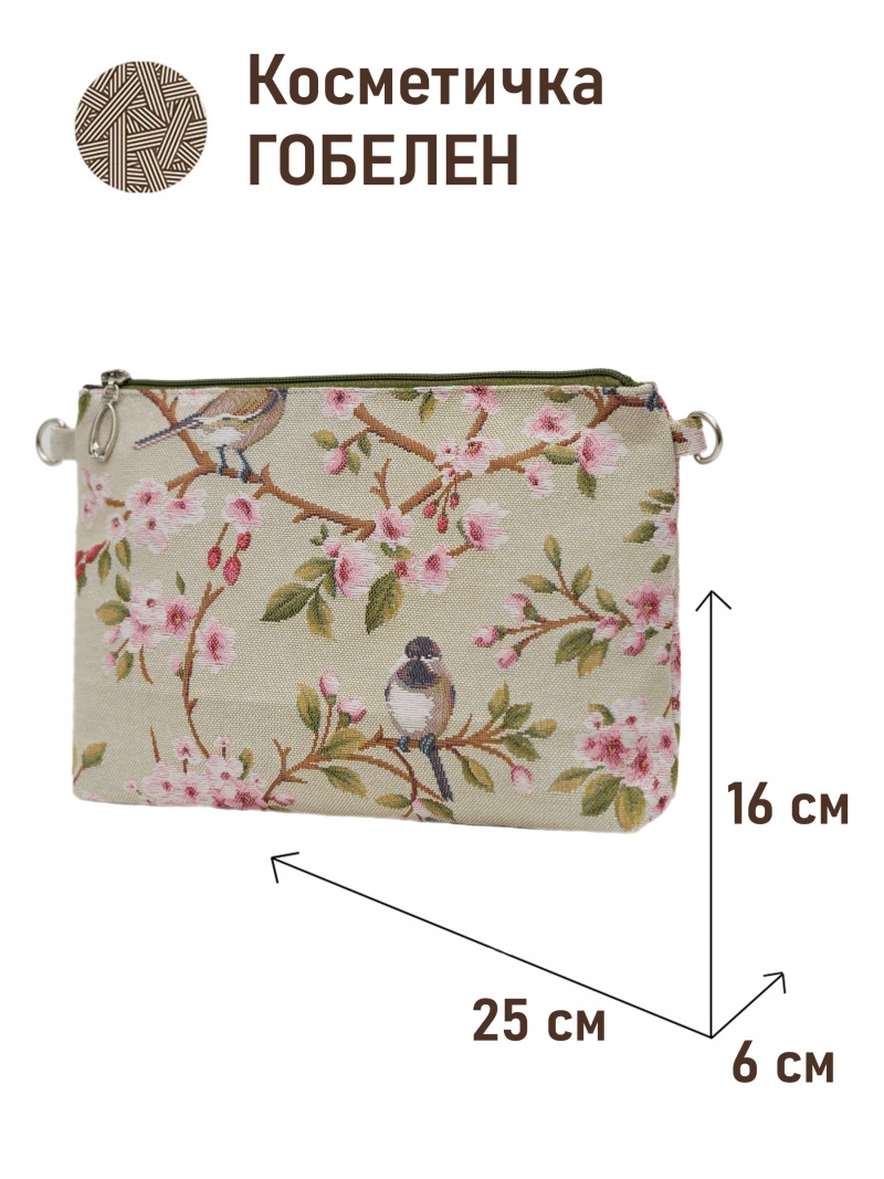 1045 Косметичка Сакура и птички беж 25х16х6 см 2520988 кольца под ремешок