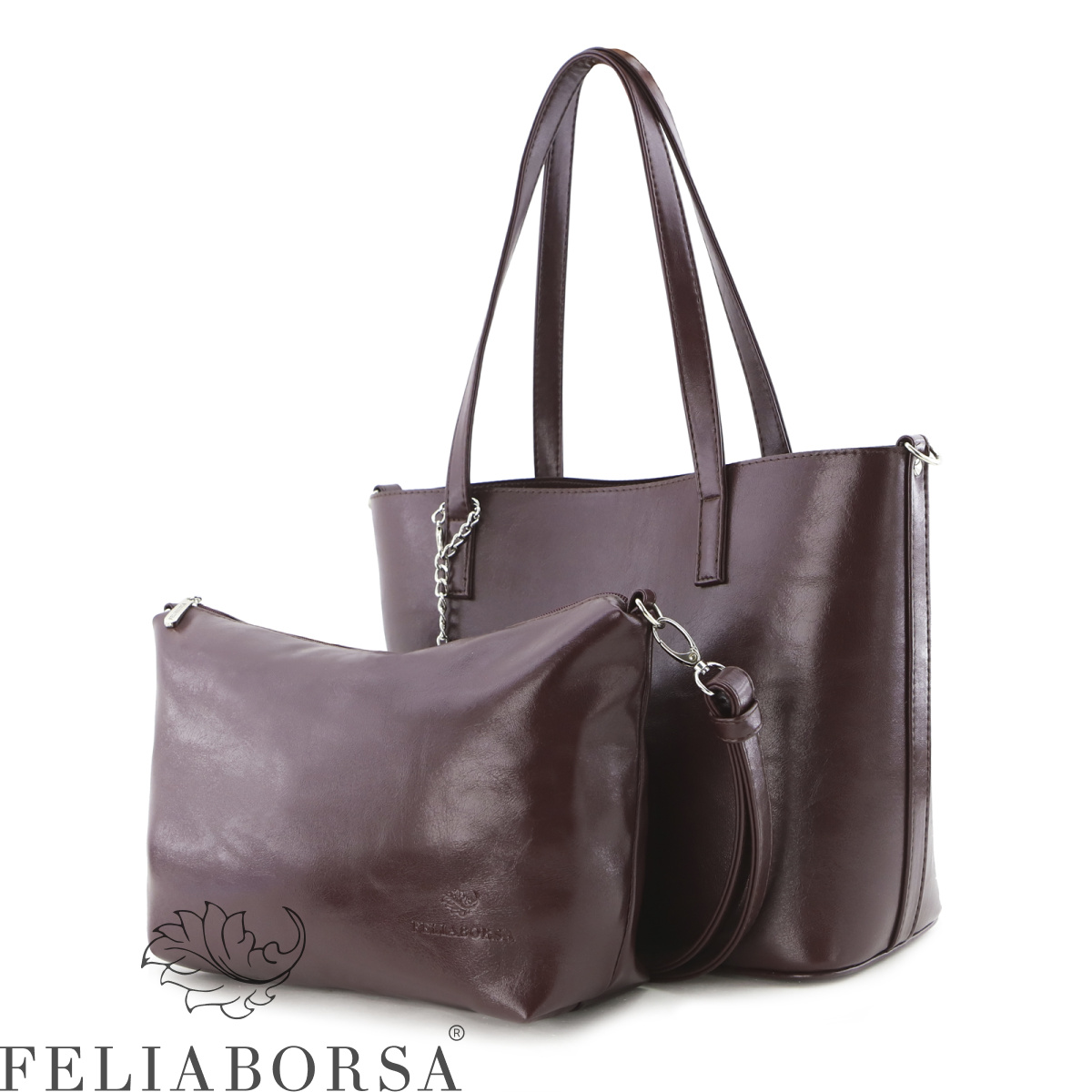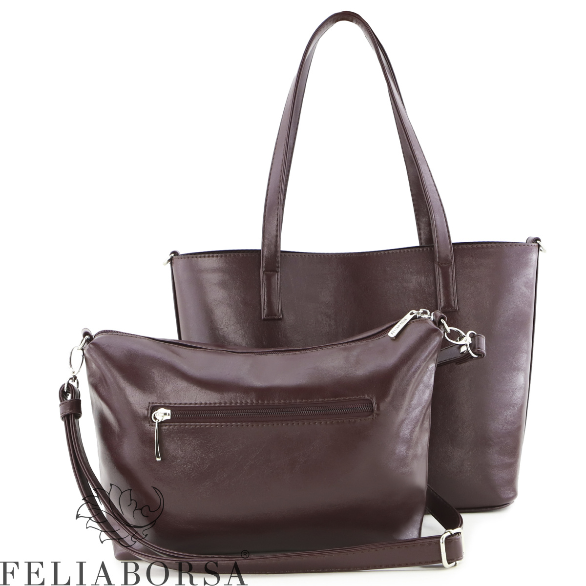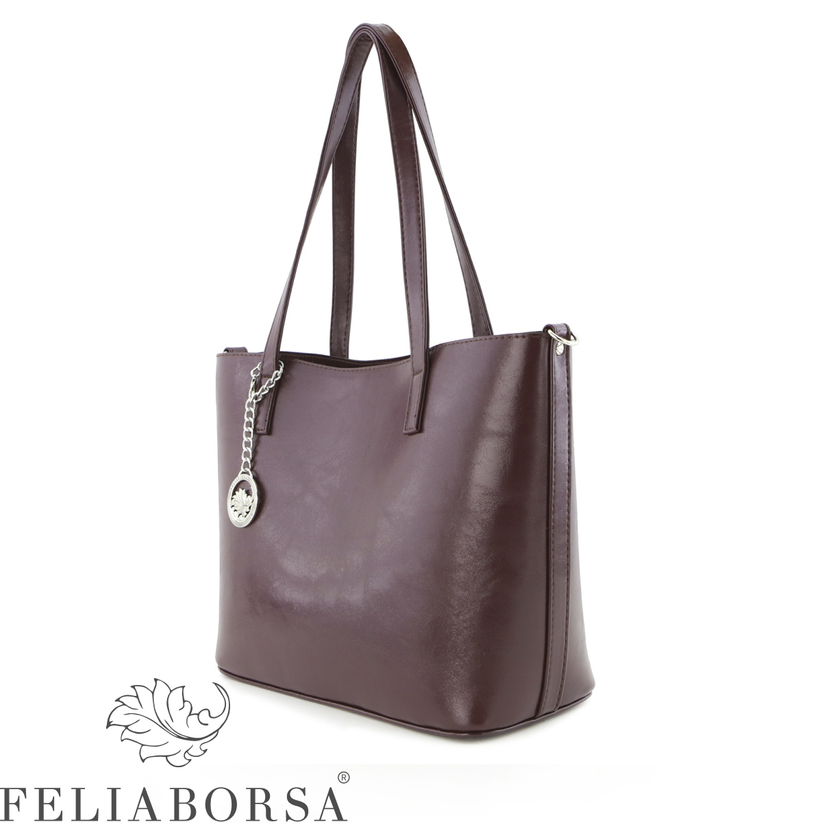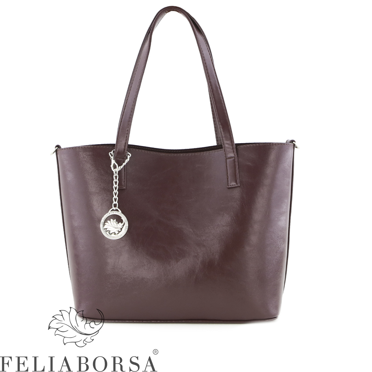 Сумка женская Feliaborsa, имеет одно основное отделение без застежки. В комплект к сумке идет дополнительная внутренняя сумка на застежке молнии и с регулируемом ручкоремнем.Внутри: карман на молнии, открытый карман. Задняя стенка: карман на молнии.