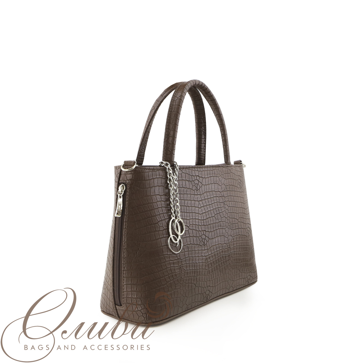 Сумка женская Оливи, полужесткая на двух ручках и регулируемом ручкоремне. Два отделения на молнии. Задняя стенка: карман на молнии. Снаружи: два боковых кармана на молнии. Внутри: карман для документов, карман на молнии, открытый карман.