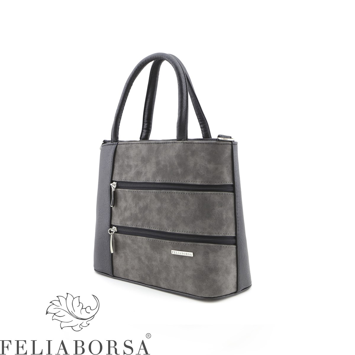 Сумка женская Feliaborsa, полужесткая на двух ручках и  регулируемом ручкоремне. Одно отделение на молнии. Передняя стенка: два кармана на молнии.Задняя стенка: карман на молнии. Внутри открытый карман, карман на молнии, карман для документов.