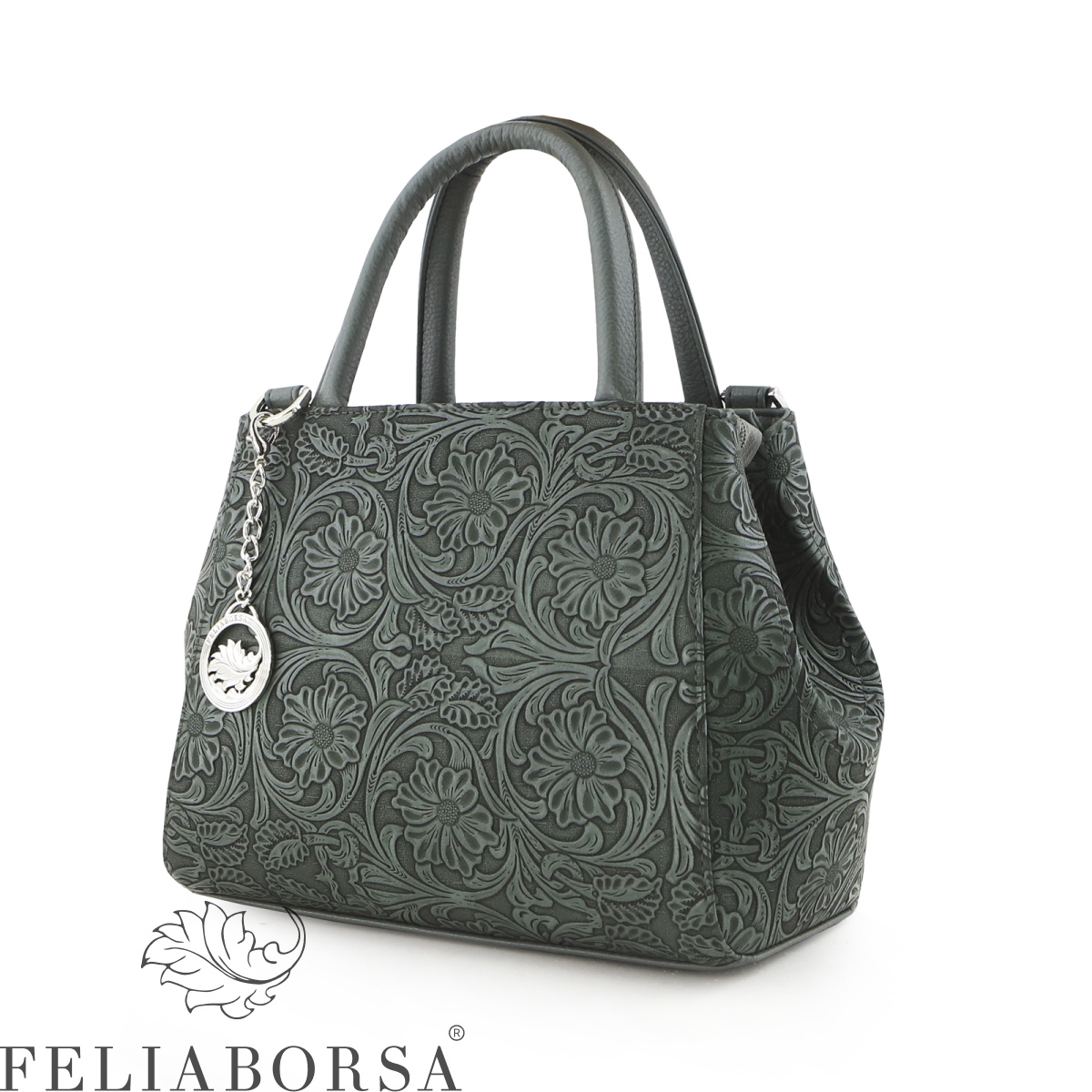 Сумка женская Feliaborsa, полужесткая на двух ручках и регулируемом плечевом ремне. Два отделения на молнии. Внутри: открытый карман, карман на молнии, карман для документов. Задняя стенка: карман на молнии.