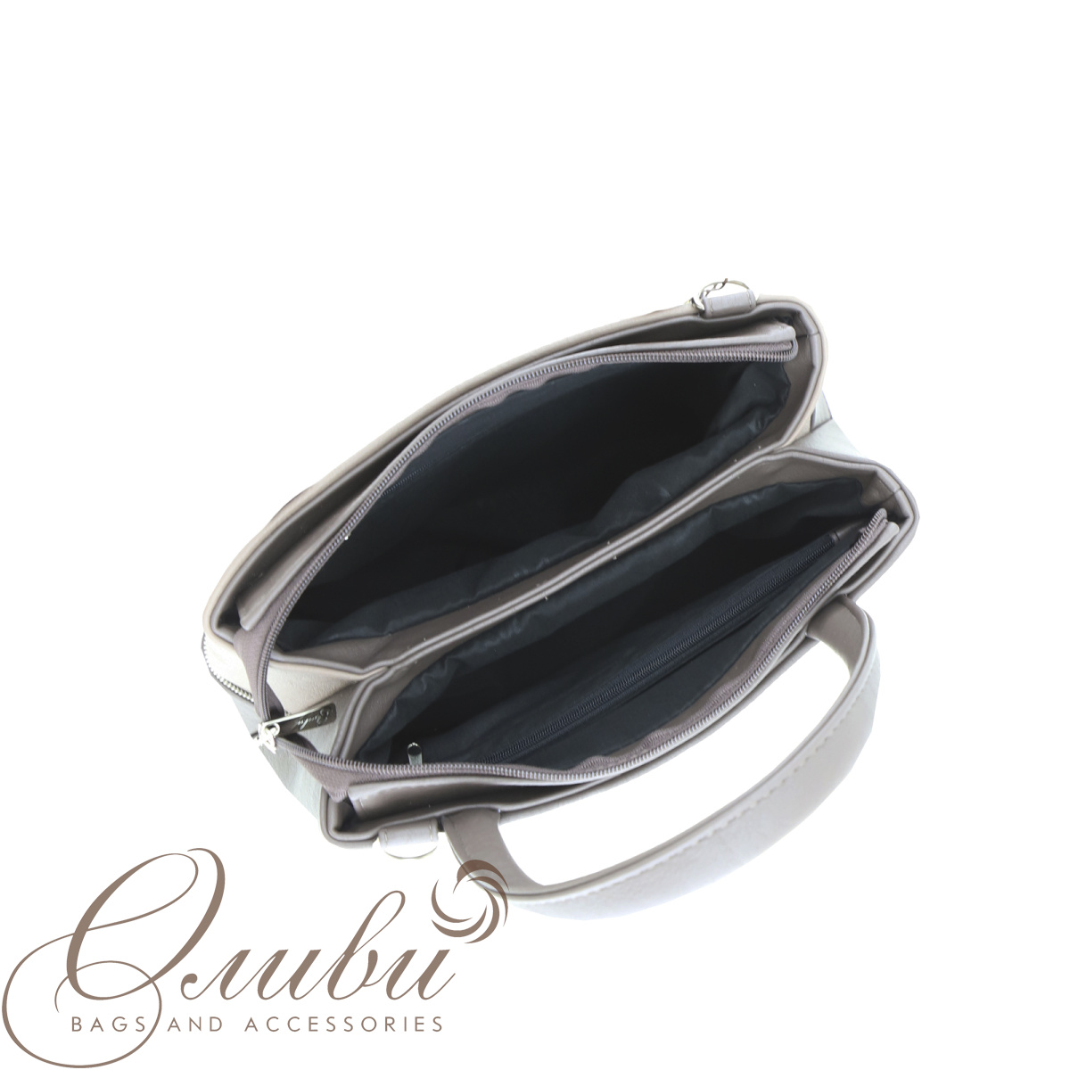 Сумка женская Оливи, полужесткая на двух ручках и регулируемом ручкоремне. Два отделения на молнии. Задняя стенка: карман на молнии.