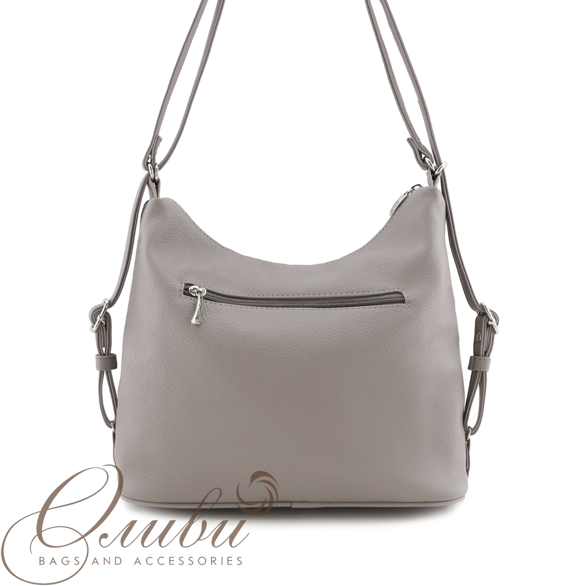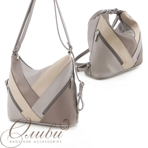 Сумка-рюкзак женская Оливи, мягкая на двух регулируемых ручках. Одно отделение на молнии.Внутри: карман для документов на молнии, закрытый карман, открытый карман. Передняя стенка - два кармана на молнии. Задняя стенка - карман на молнии