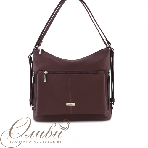 Сумка-рюкзак женская Оливи, мягкая на двух регулируемых ручках. Два отделения на молнии.Внутри: карман для документов на молнии, открытый карман, закрытый карман. Передняя стенка - три кармана на молнии. Задняя стенка - карман на молнии