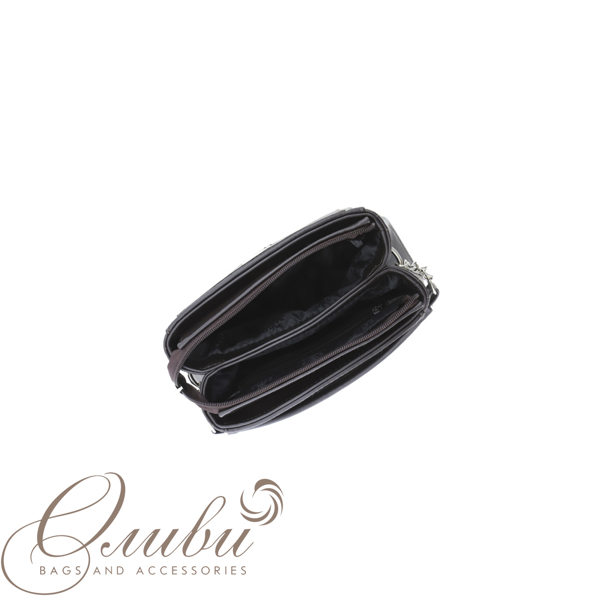 Два отделения на молнии. Задняя стенка: карман на молнии. Внутри: карман на молнии, открытый карман, карман для документов на молнии.