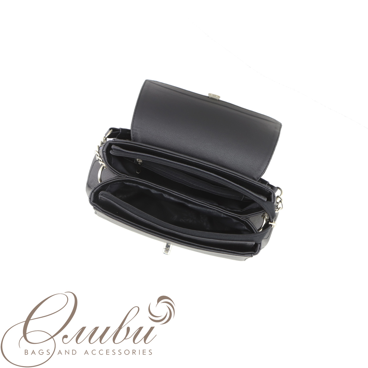 Сумка женская Оливи с клапаном, полужесткая на короткой ручке и  регулируемом ручкоремне. Два отделения на молнии. Задняя стенка: карман на молнии. Внутри: карман на молнии, карман-перегородка на молнии.
