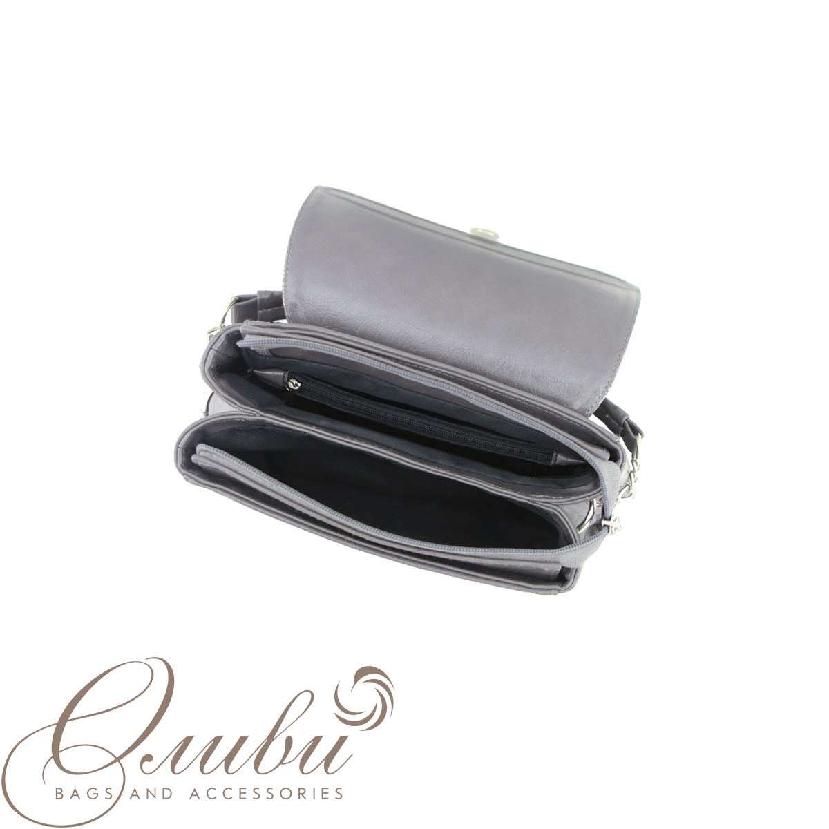 Сумка женская Оливи с клапаном, полужесткая на короткой ручке и  регулируемом ручкоремне. Два отделения на молнии. Задняя стенка: карман на молнии. Внутри: карман на молнии, карман-перегородка на молнии.