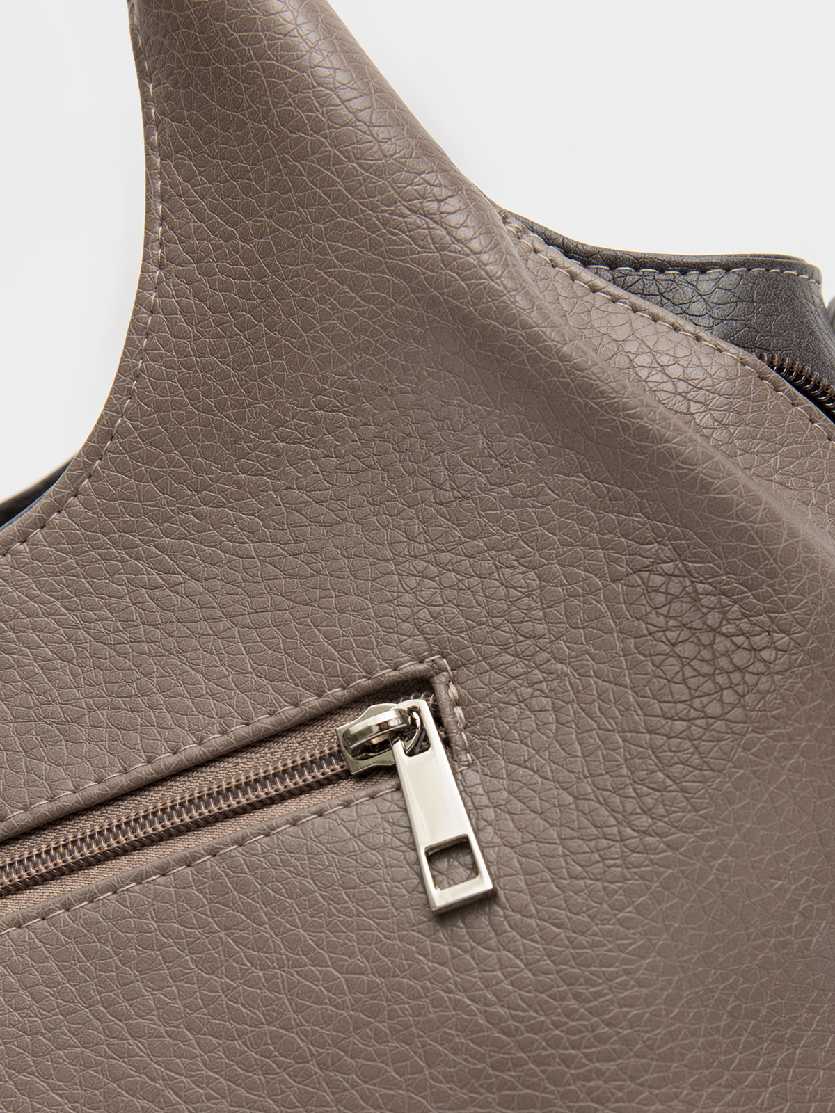 Эта сумка - Ваш помощник на все случаи жизни. Её мягкие ручки плавно переходят в сумку и составляют единую конструкцию, не впиваются в плечо, независимо от наполнения сумки. Молнии по бокам позволят увеличить вместимость сумочки. Классический лаконичный дизайн хобо позволит использовать как для покупок, так и для Ваших важных дел.