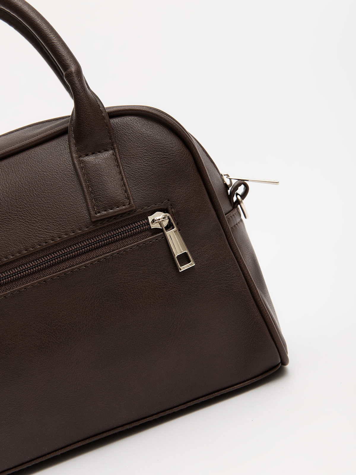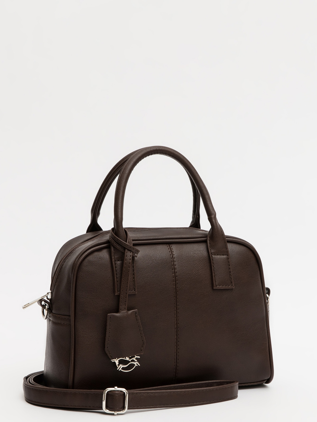 Актуальный силуэт в минималистичном дизайне легко сочетается с разными образами. Две ручки и длинный регулируемый ремень позволяют носить его в руке, на плече или как кросс-боди. Широкий бочок обеспечивает вместительность без громоздкости. Основное отделение дополнено задним карманом на молнии для быстрого доступа к мелочам. Внутри — карман на молнии для документов и отделение для телефона. Стильный съёмный брендированный декор добавляет индивидуальности.