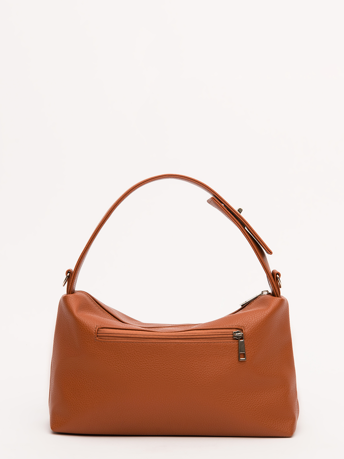 Мягкая вытянутая форма с широкой декоративной ручкой и металлической фурнитурой делает эту модель трендовым аксессуаром. Удобная короткая ручка идеально ложится в ладонь, а съёмный длинный ремень позволяет носить сумку через плечо. Основное отделение и задний карман на молнии обеспечивают практичность, а два внутренних кармана помогают поддерживать порядок.
