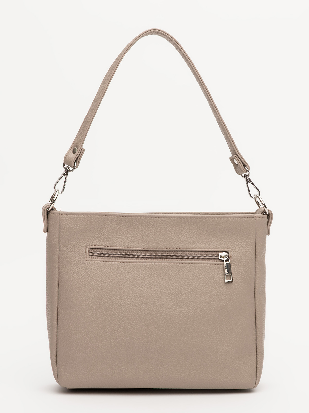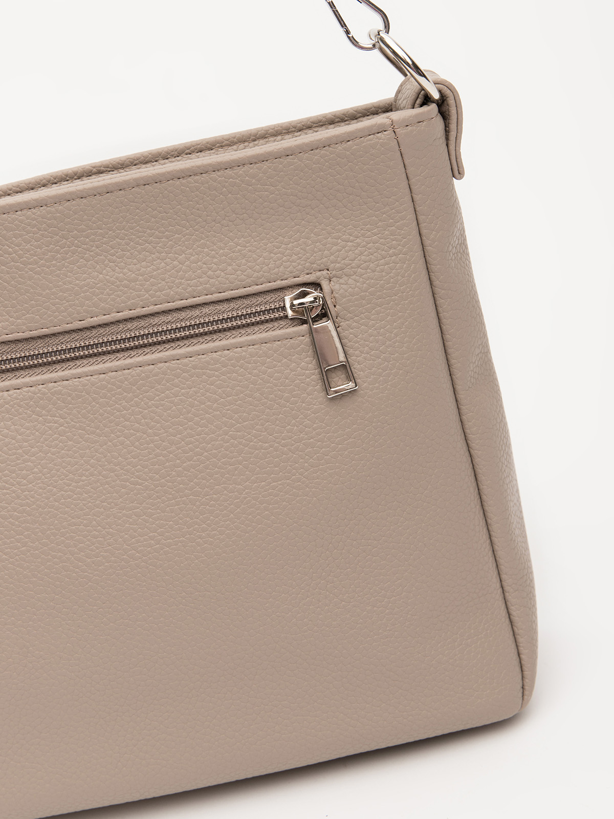 Геометричная форма с диагональным карманом и естественной складкой верха создаёт стильный женственный силуэт. В комплекте — съёмная короткая ручка и регулируемый ремень для разных вариантов ношения: в руке, на плече или через плечо.