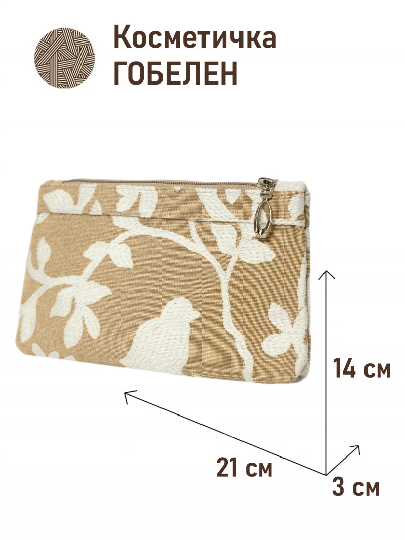 51 Косметичка Птицы бежевый фон 21х14х3см 2520303