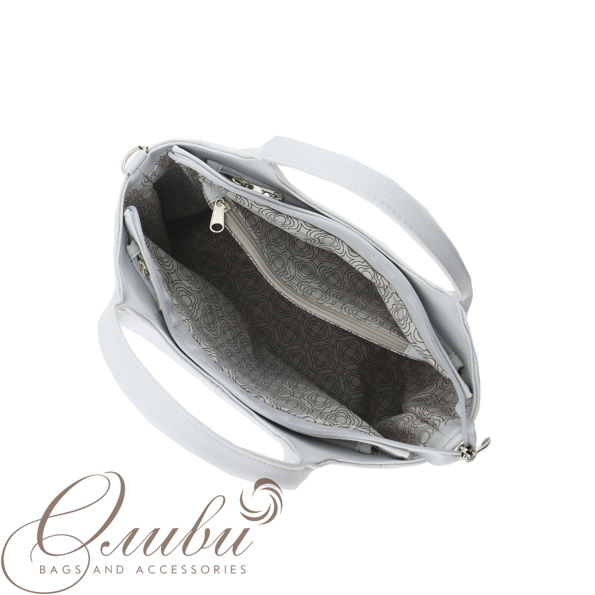 Сумка женская Оливи, мягкая на двух ручках и съемном регулируемом ручкоремне. Три отделения на молниях. Снаружи два боковых кармана на молнии. Задняя стенка: карман на молнии. Внутри: вместительный карман-перегородка на молнии, открытый карман.
