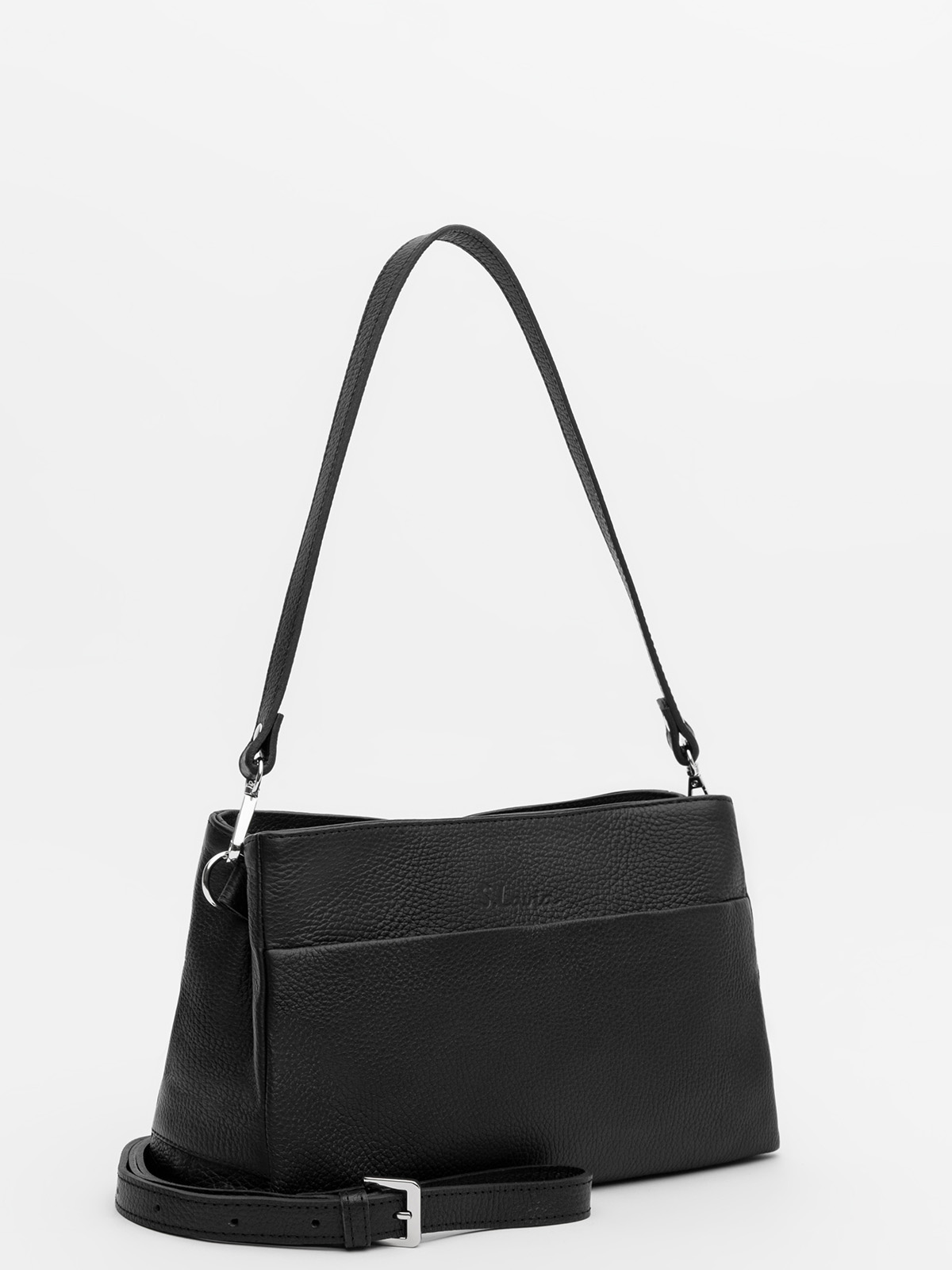 Элегантная сумка кросс-боди среднего размера из натуральной кожи с удобным длинным регулируемым ремнём и дополнительной ручкой на карабинах. Трапециевидная форма, расширяющаяся к низу, обеспечивает удобную организацию пространства с двумя основными отделениями на молнии и двумя внутренними карманами. На передней части — стильное тиснение и функциональный карман на кнопке, а на задней — дополнительный карман на молнии для мелочей. Практичная и стильная, эта сумка идеально подходит для повседневного использования, сочетая в себе удобство и элегантный дизайн. Универсальный аксессуар, который дополнит любой образ.