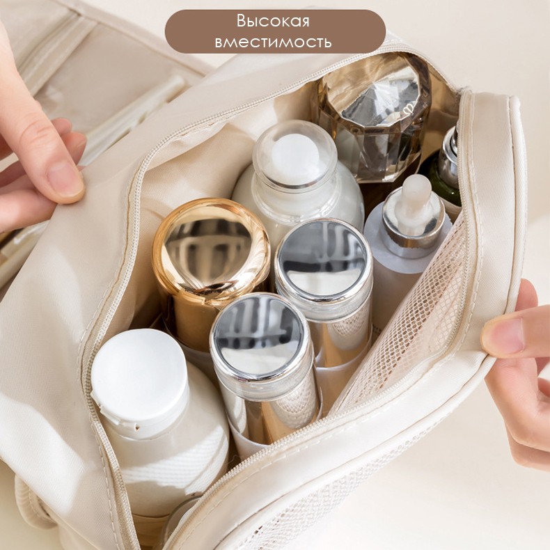 * Стильная и портативная. Эта косметичка имеет элегантный дизайн, что делает ее модным аксессуаром для любого путешествия или повседневного использования.