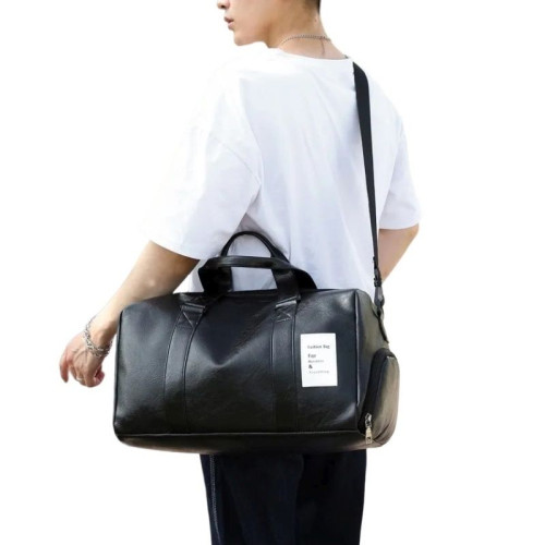 Внутри: одно большое вместительное отделение. По бокам расположены карманы на молнии и без для документов, телефона и различных мелочей. С внешней стороны сбоку имеется отделение для обуви. Сумка закрывается на молнию. В комплекте имеется удлинённый прочный ремень, регулируемый по высоте.