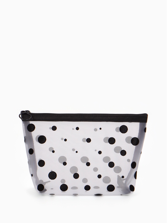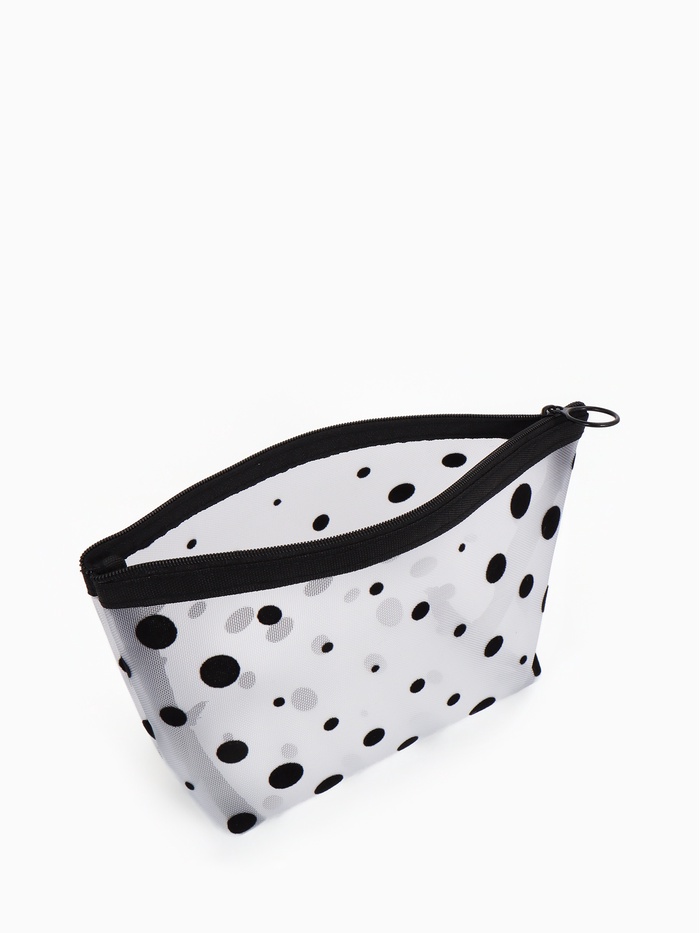 Косметичка DOTs, с рисунком, сетка, на молнии, белая