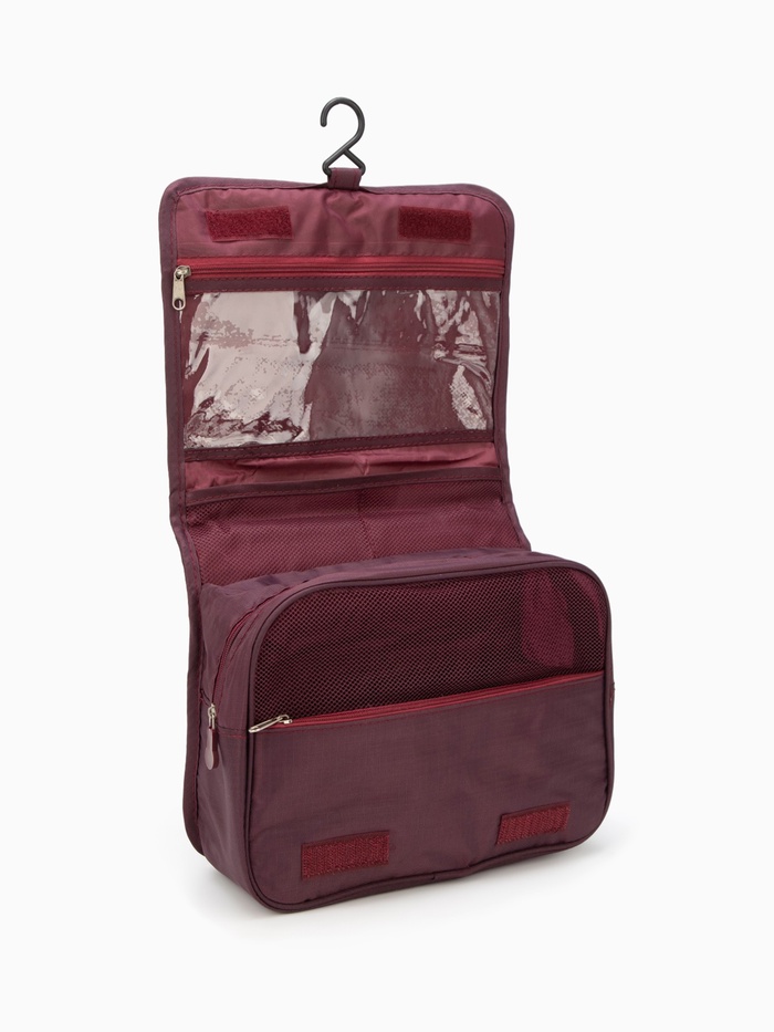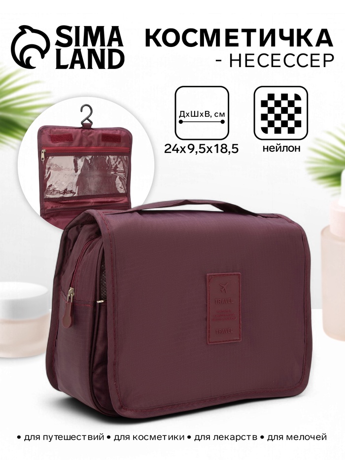 Косметичка-несессер дорожная на молнии, липучках, с крючком, ручкой, бордовая