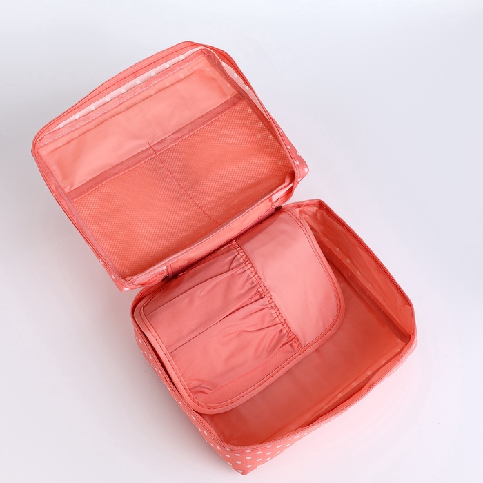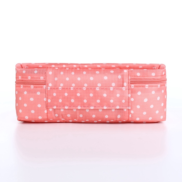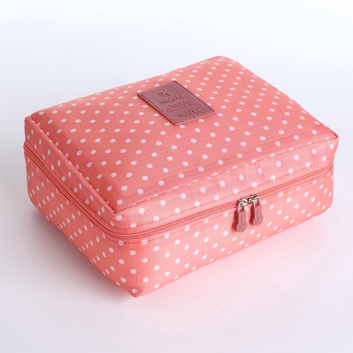 Косметичка-органайзер дорожная на молнии, с карманами, в мелкий горох, розовая