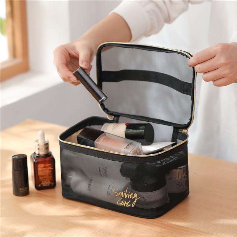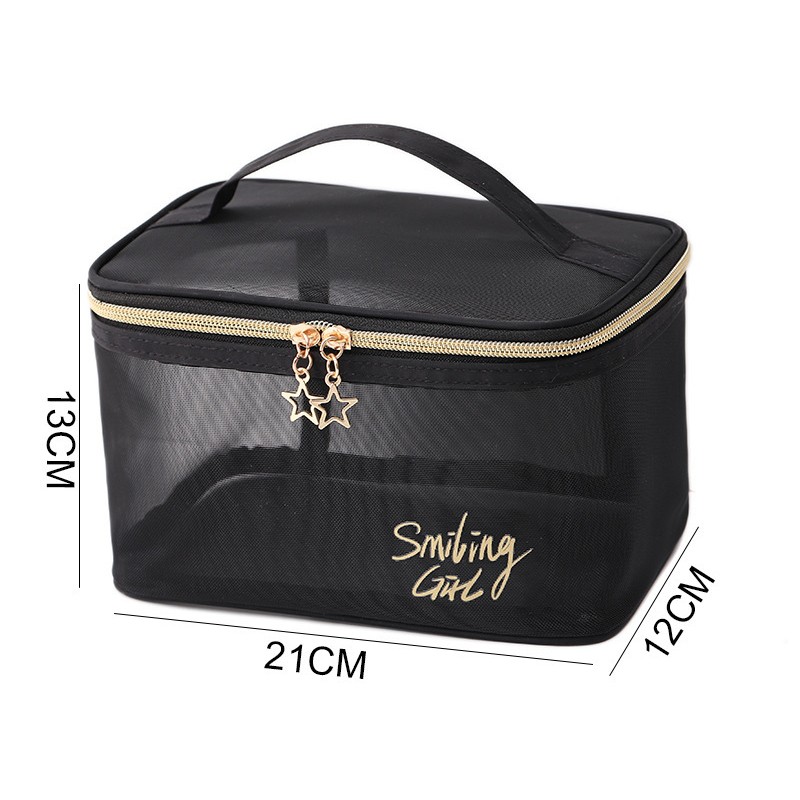 Косметичка прозрачная из плотной сетки 21*13*12 см., Smiling Girl