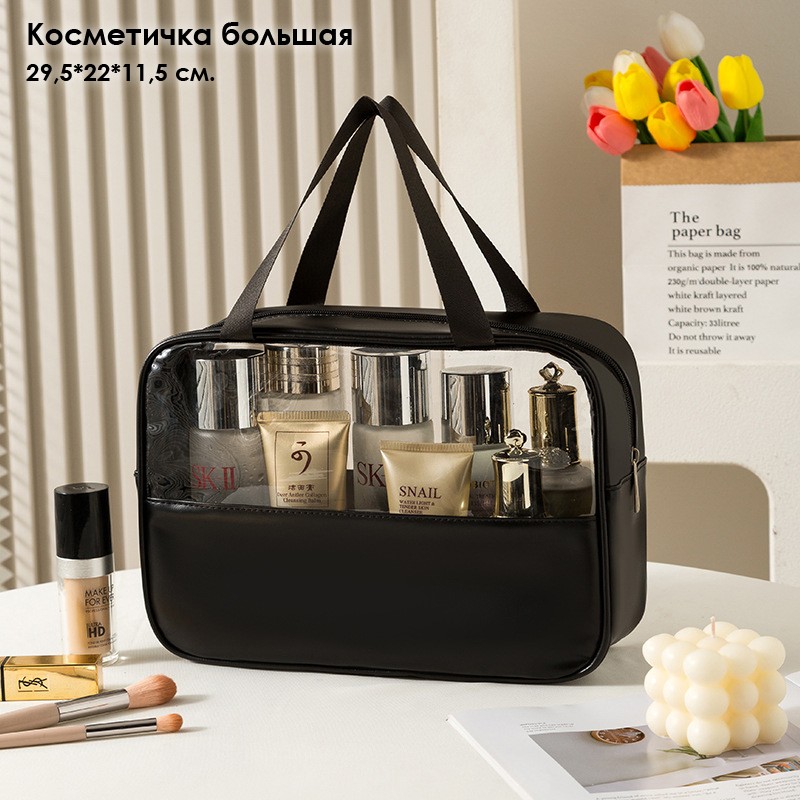 Косметичка прозрачная непромокаемая, Размер: L Большой 29,5*22*11,5 см.
