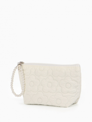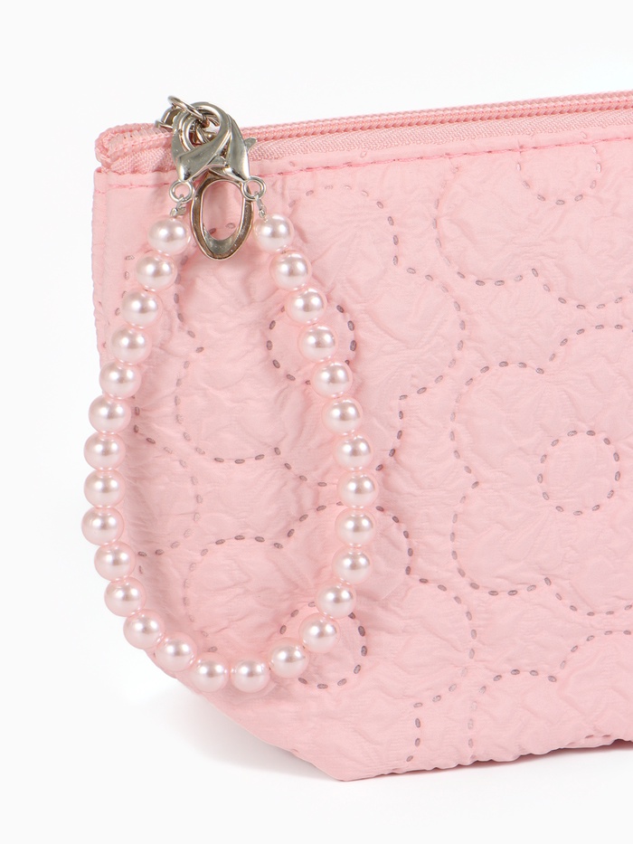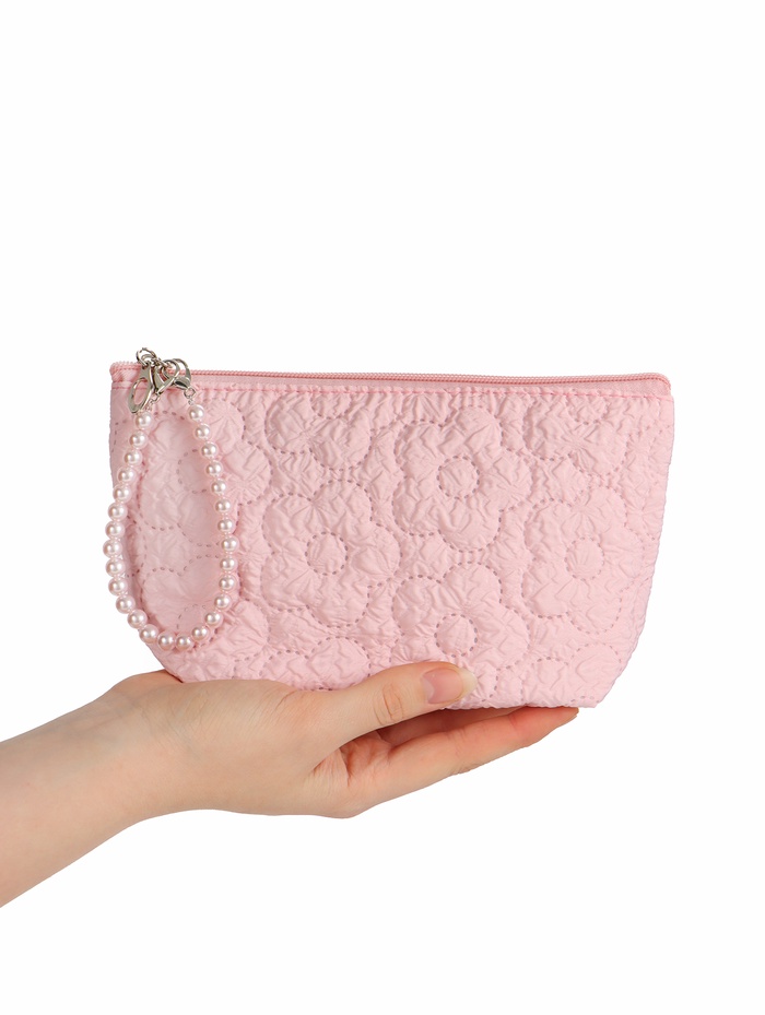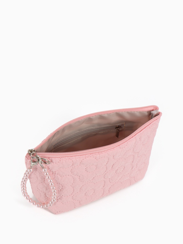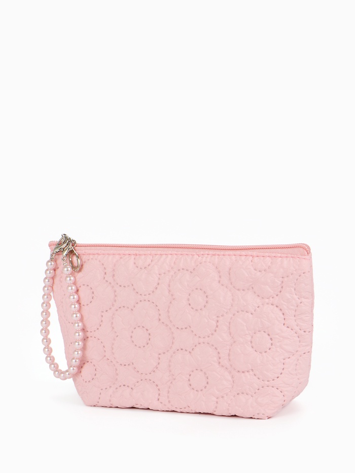 Косметичка женская «Цветочки», на молнии, ручка из бусин, розовая