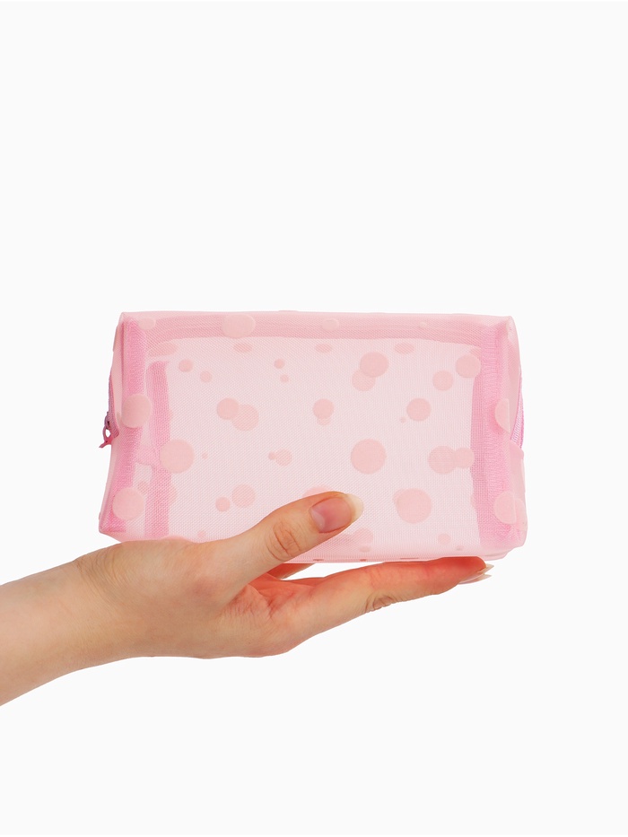 Косметичка женская DOT, с рисунком, сетка, на молнии, розовая