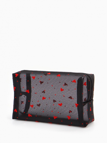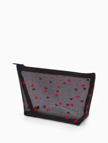Косметичка женская HEARTS, с рисунком, сетка, на молнии, чёрная
