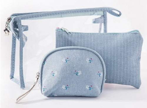 Набор косметичек 3 в 1, цветочек, голубой 24х14х7