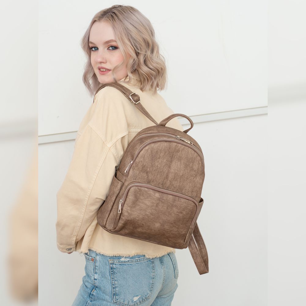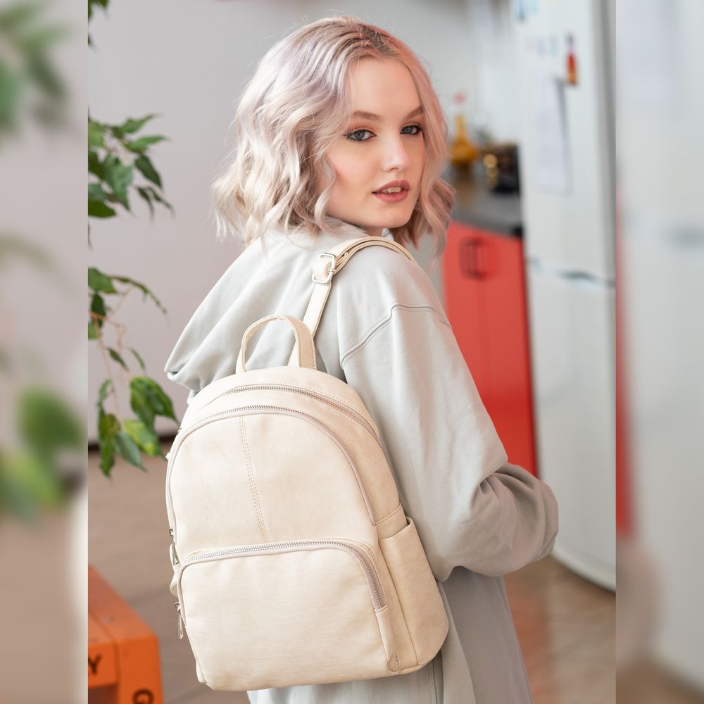 У повседневных рюкзаков этой модели классический крой, поэтому они хорошо сочетаются с различной одеждой. В серии 6 цветовых решений — вы остаетесь верной своему стилю. Экокожа на плотной тканой основе буквально не пачкается и долго остается как новая. Носите рюкзак с удовольствием.