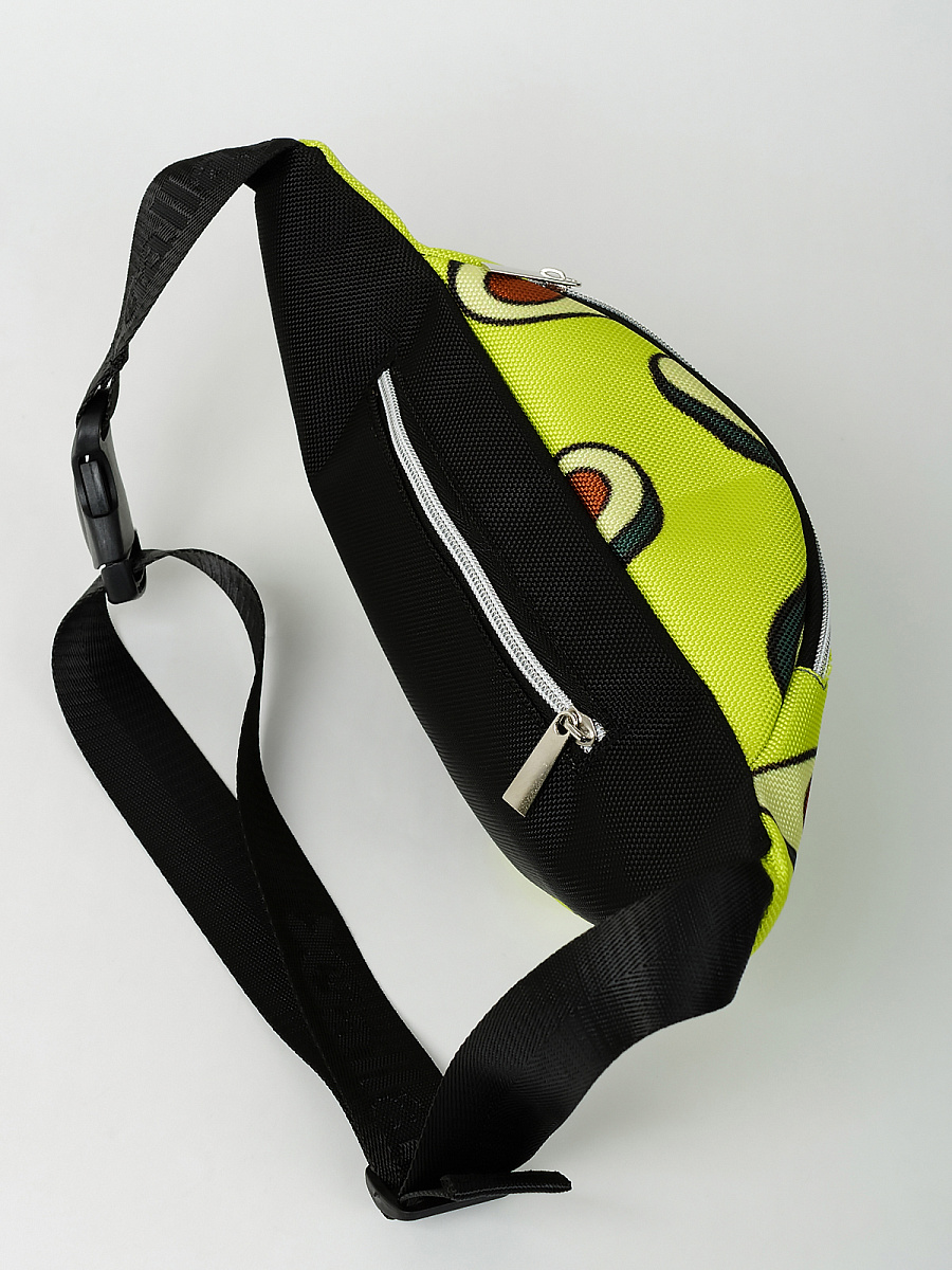 Поясная сумка . Современные разнообразные принты позволяют носить сумку как с повседневной так и со спортивной одеждой. Имеет два больших отделения под молнию. Основное отделение  не содержит дополнительных карманов и отсеков, а представляет из себя одно большое цельное пространство. Сзади карман под молнию. Минимальная длинна ремня 54 см, месте с сумкой минимальная длина окружности составляет 90 см. Максимальная длинна ремня 84 см. Вместе с сумкой максимальная длина окружности 120 см. Ремень оборудован прочным пластиковым замком типа фастекс.