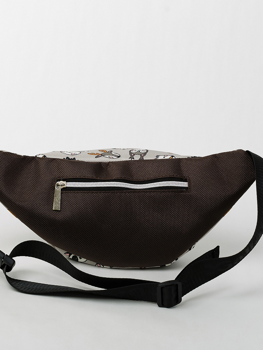 Поясная сумка . Современные разнообразные принты позволяют носить сумку как с повседневной так и со спортивной одеждой. Имеет два больших отделения под молнию. Основное отделение  не содержит дополнительных карманов и отсеков, а представляет из себя одно большое цельное пространство. Сзади карман под молнию. Минимальная длинна ремня 54 см, месте с сумкой минимальная длина окружности составляет 90 см. Максимальная длинна ремня 84 см. Вместе с сумкой максимальная длина окружности 120 см. Ремень оборудован прочным пластиковым замком типа фастекс.