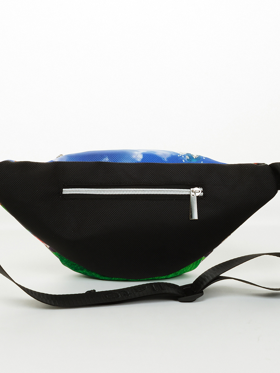 Поясная сумка . Современные разнообразные принты позволяют носить сумку как с повседневной так и со спортивной одеждой. Имеет два больших отделения под молнию. Основное отделение  не содержит дополнительных карманов и отсеков, а представляет из себя одно большое цельное пространство. Сзади карман под молнию. Минимальная длинна ремня 54 см, месте с сумкой минимальная длина окружности составляет 90 см. Максимальная длинна ремня 84 см. Вместе с сумкой максимальная длина окружности 120 см. Ремень оборудован прочным пластиковым замком типа фастекс.